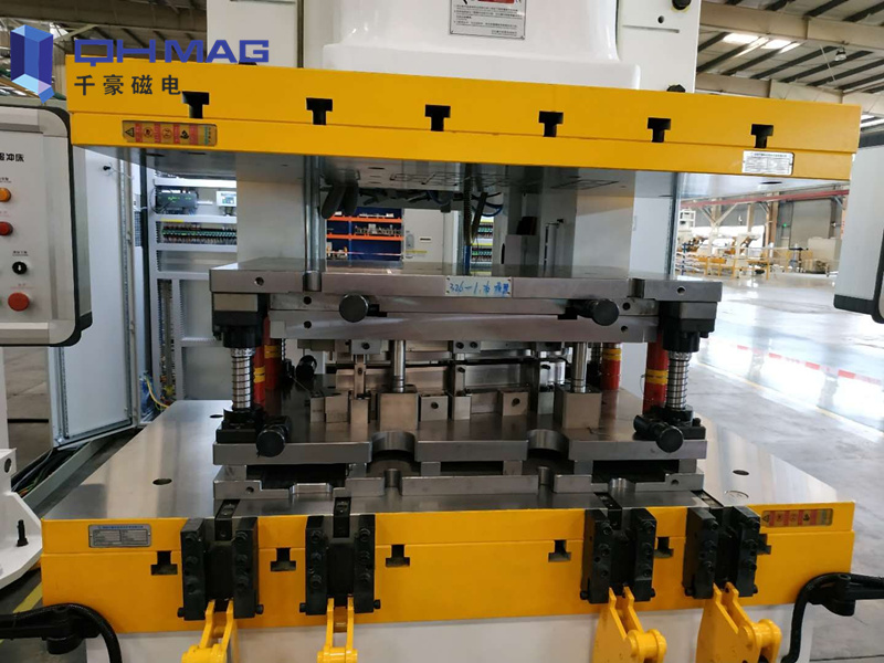 沖床用電永磁快速換模系統(tǒng)適合任何形狀和尺寸的模具,已有的模具無需修改就可以用在配備有HQ系統(tǒng)的沖床上,不需要制定特殊的模具標(biāo)準(zhǔn),節(jié)省設(shè)計(jì)和制作時(shí)間,降低成本,同時(shí)可以在磁盤上增加各種您所需要的設(shè)備:定位裝置、沉孔、下模延伸板等都可以定制添加。對(duì)于裝備有長條形模架的模具,磁盤上的磁極可設(shè)計(jì)為相應(yīng)的長條形,從而提供最佳的效果。下模可增加T型槽,適用于絕大多數(shù)的模具升降滑軌。