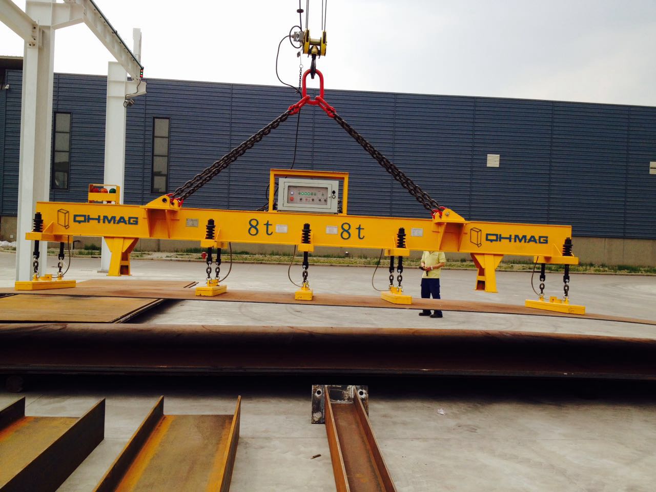 1、廣泛用于鋼廠、船廠、機(jī)械制造廠、各種鋼板預(yù)處理線、自動(dòng)切割線等需要吊運(yùn)鋼板的場(chǎng)合