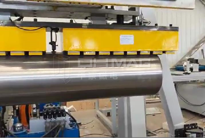 此次哈工大選用的千豪磁電的V型電永磁布局,可牢固吸住鋼管進行搬運,翻轉(zhuǎn)。工作過程不需要用電。